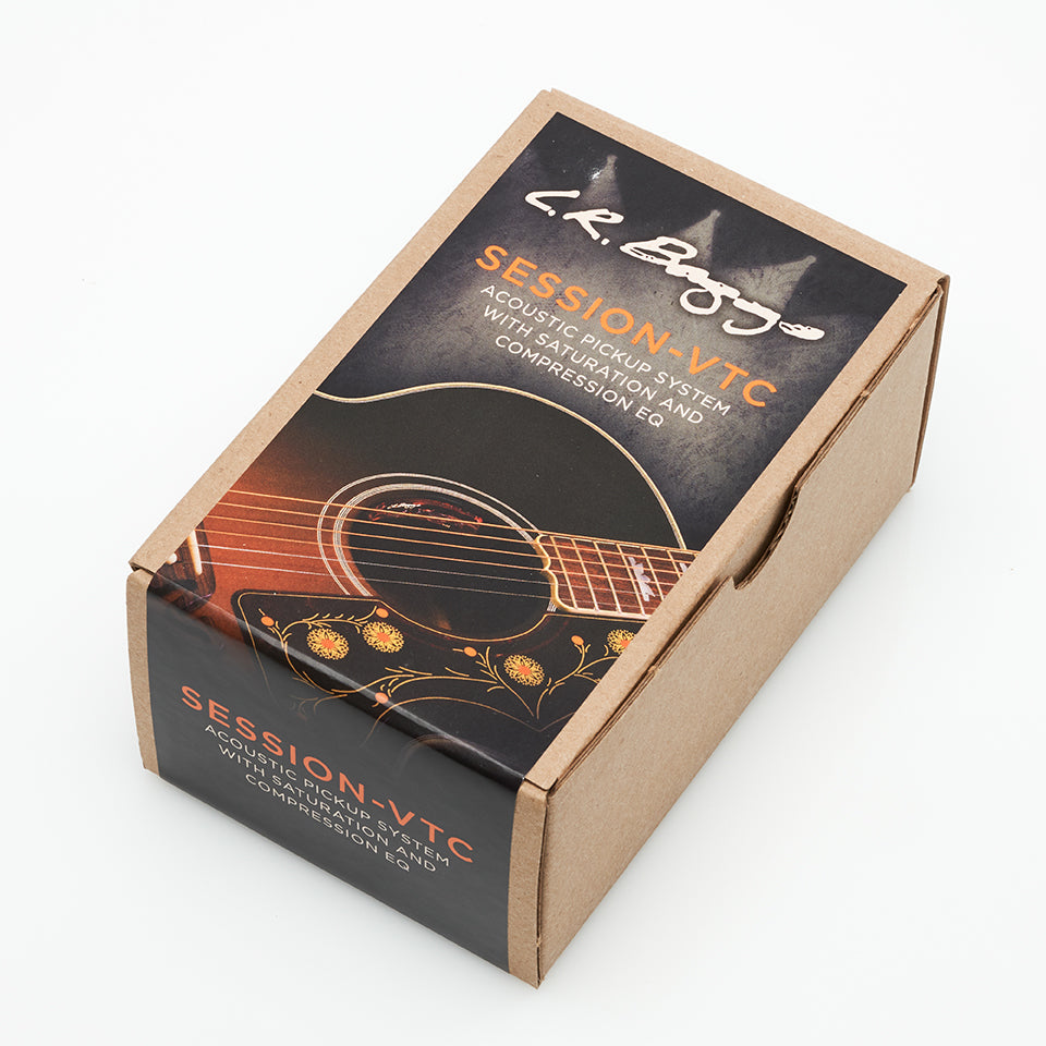The Session VTC features built-in “tape-like” saturation and is voiced specifically for the acoustic guitar adding analog warmth to the acoustic sound. Along with a built-in EQ control, this circuitry continually suppresses problematic frequencies common in live performances, allowing the best qualities of your guitar to come through the mix.
